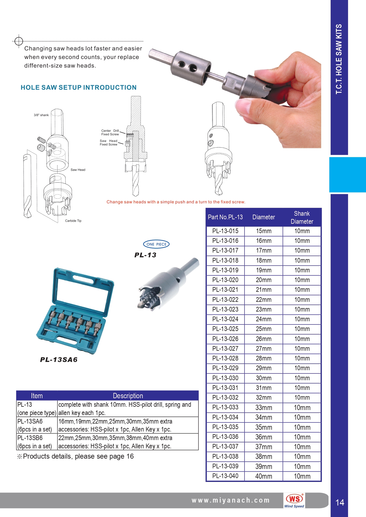 標準型單刃式圓穴鋸。它有一體式的柄心軸與鋸杯。它專為在3毫米厚度的不鏽鋼板上鑽孔而設計,固定在10毫米柄心軸下,直徑從 15 毫米到 40 毫米不等。